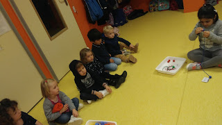Mardi, les MS ont pu commencé également à manipuler leurs ateliers que je leur ai présenté le matin.